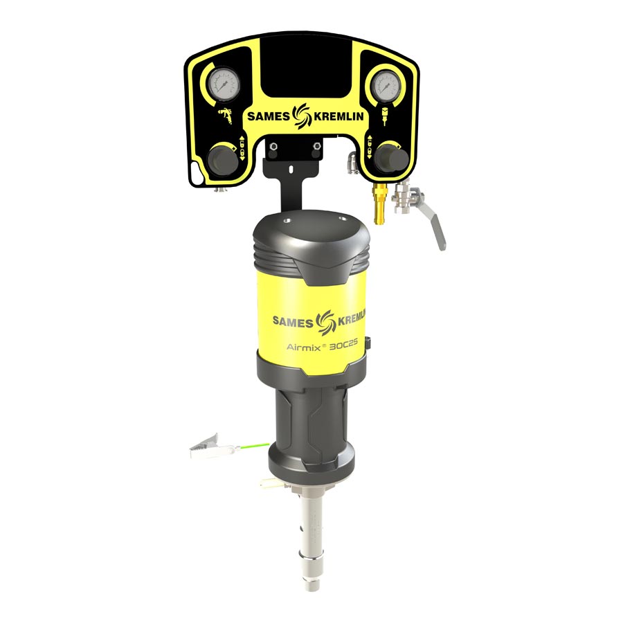 The 30C25 Airmix® paint pump packages are available in wall-mount versions with stand mounting as an option. Packages are available with (1) Xcite™ 200 bar Airmix® manual spray gun and 7.5 m (25ft) air and fluid hoses. A wide variety of options are available to meet all customer requirements.
